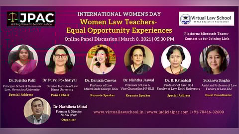 The Virtual Law School is organising an Online Panel Discussion on 'Women Law Teachers- Equal Opportunity Experiences' on March 8, 2021 from 05:30 pm to 07:00 pm on Microsoft Teams.