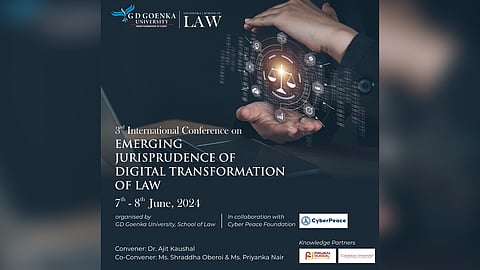 School of Law, GD Goenka University in collaboration with Cyber Peace Foundation is organising the 3rd International Conference on “Emerging Jurisprudence of Digital Transformation of Law” on 7th - 8th June, 2024, and is inviting submissions exploring the legal, technological and regulatory aspects and services that are emerging in India and abroad.