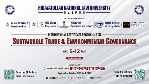 The Hidayatullah National Law University, Raipur (HNLU), through its Centre for WTO and WIPO Studies, School of Law and Technology (SLT) has invited registrations for its Certificate Programme on Sustainable Trade and Environmental Governance.