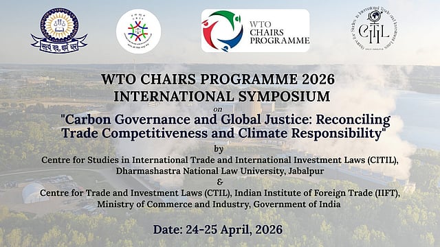 The Centre for Studies in International Trade and Investment Law (CITIL), Dharmashastra National Law University (DNLU), Jabalpur has announced the World Trade Organization (WTO) Chairs Programme - International Symposium 2026 themed 'Carbon Governance and Global Justice: Reconciling Trade Competitiveness and Climate Responsibility' to be held on April 24-25, 2026.