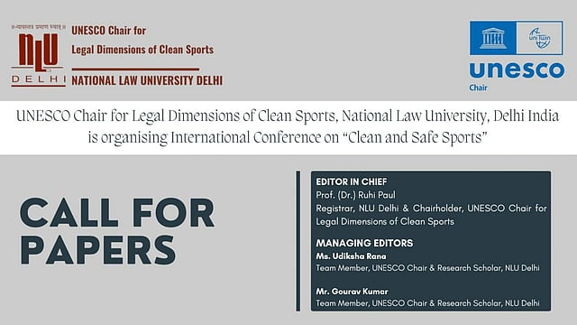 The UNESCO Chair for Legal Dimensions of Clean Sports at National Law University Delhi (NLU Delhi) is organizing an International Conference on 'Clean and Safe Sports' to promote global dialogue and interdisciplinary research on the dimensions of clean and safe sporting practices.