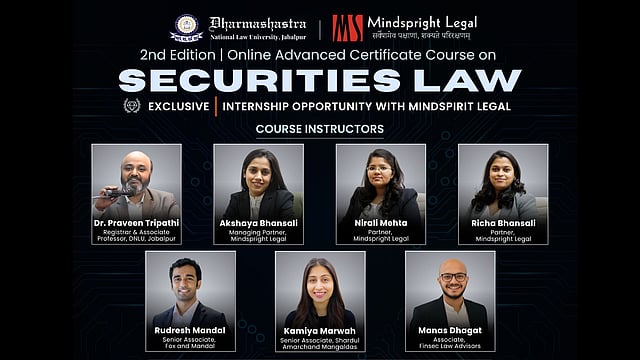 Dharmashastra National Law University (DNLU) is organising the 2nd Online Advanced Certificate Course on Securities law in collaboration with Mindspright Legal scheduled for April 11-19, 2026.