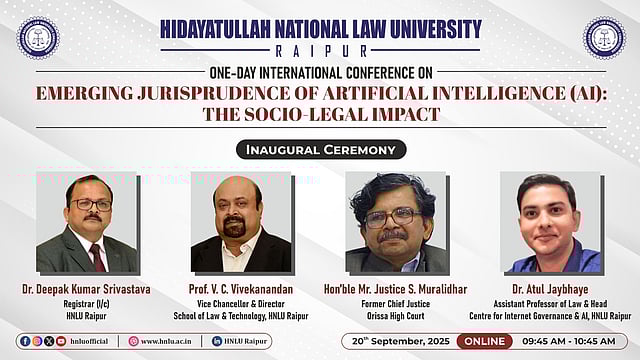 The Hidayatullah National Law University (HNLU), Raipur recently hosted a one-day online International Conference on “Emerging Jurisprudence of Artificial Intelligence (AI): The Socio-Legal Impact” on September 20, 2025.