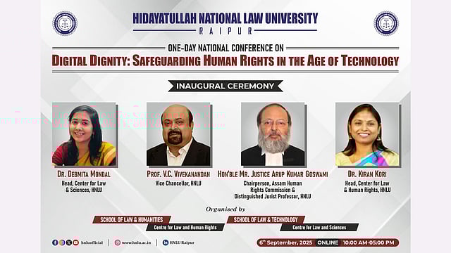 The Hidayatullah National Law University (HNLU), Raipur, through its Centre for Law and Human Rights and the Centre for Law and Science organized a one-day online national conference on the theme 'Digital Dignity: Safeguarding Human Rights in the Age of Technology' on September 6, 2025.
