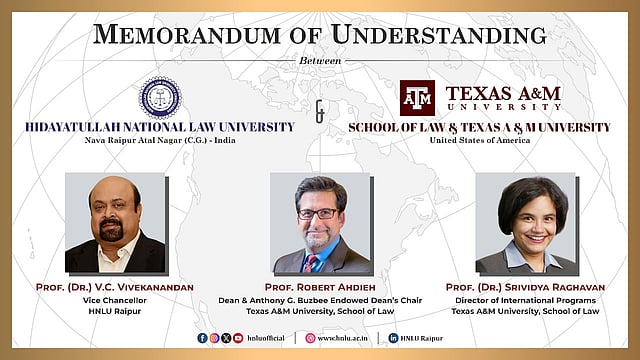 The Hidayatullah National Law University, Raipur (HNLU) has signed a Memorandum of Understanding (MoU) with the School of Law, Texas A&M University to begin a comprehensive academic partnership.