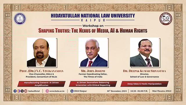 The Hidayatullah National Law University (HNLU) recently hosted a workshop on 'Shaping Truths: The Nexus of Media, Artificial Intelligence (AI), and Human Rights' as part of its Constitution@75 Series and CG-LEARN, to mark this year's International Human Rights Day.
