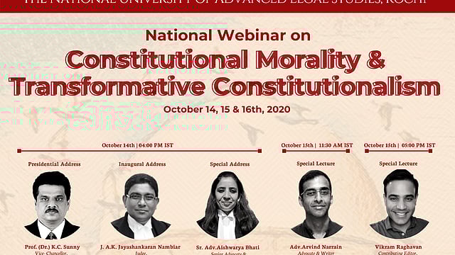 The National University of Advanced Legal Studies is conducting a 3 Day National webinar on “Constitutional Morality and Transformative Constitutionalism” from 14 - 16 October.