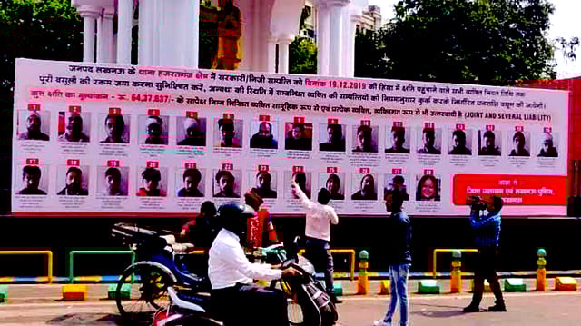 These banners display pictures of accused who allegedly caused damage to public property during the anti-CAA-NRC protests that took place on December 19, 2019.