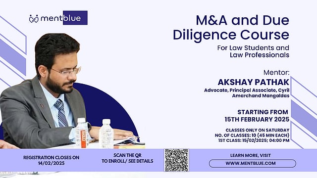 Mentblue, an initiative designed to help law aspirants, students, and professionals connect with experienced mentors, is offering a course on M&A and Due Diligence.