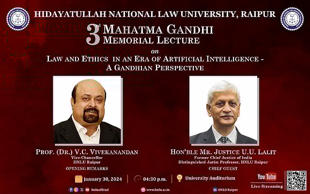 Justice Lalit, who serves as a Distinguished Jurist Professor at HNLU, will speak on the topic Law & Ethics in an Era of Artificial Intelligence: The Gandhian Perspective.