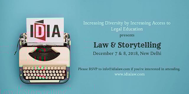 IDIA (Increasing Diversity by Increasing Access) will be conducting its Annual Conference on December 7-8 at the Constitution Club, Delhi. The theme for this year’s event is ‘Law & Story Telling’ and will feature prominent speakers from the Bar, the Bench, law firms, civil society and academia.