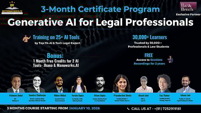 Bettering Results (BR), in exclusive collaboration with Bar & Bench, has launched India’s first Generative Artificial Intelligence (Gen AI) programme for legal professionals.