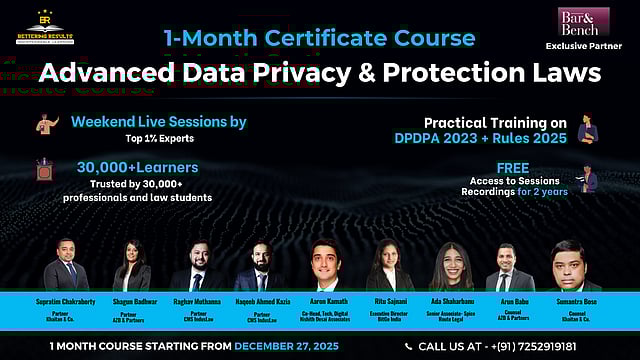 Recognising this industry shift, Bettering Results (BR), in collaboration with Bar & Bench, is launching the 1-Month Certificate Course on Advanced Data Privacy & Protection Laws, commencing December 27, 2025.