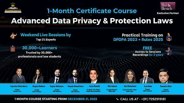 Recognising this industry shift, Bettering Results (BR), in collaboration with Bar & Bench, is launching the 1-Month Certificate Course on Advanced Data Privacy & Protection Laws, commencing December 21, 2025.