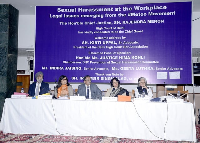The discussion on ‘Sexual Harassment at the Workplace: Legal issues emerging from the #MeToo Movement’ featured a number of eminent speakers including Chairperson of the Delhi High Court Prevention of Sexual Harassment Committee Justice Hima Kohli, and Senior Advocate Geeta Luthra. The welcome address was delivered by Delhi High Court Bar Association President Kirti Uppal. The event was attended by judges of the High Court and a host of lawyers.