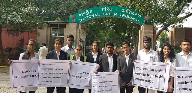 A collective of law students from various law colleges in Maharashtra conducted a demonstration yesterday in front of the National Green Tribunal (NGT), Delhi, to highlight the need for filling up vacancies across NGT Benches.