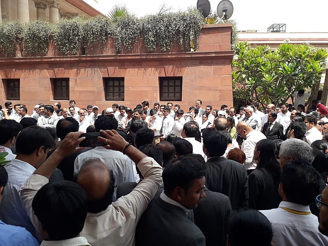 This declaration was followed by a woman employee addressing the allegations of sexual harassment made against Chief Justice of India Ranjan Gogoi that have been haunting the Supreme Court. She said that “baseless allegations” were being levelled against a fine judge like CJI Gogoi, a sentiment that garnered support from everybody that was part of the gathering.