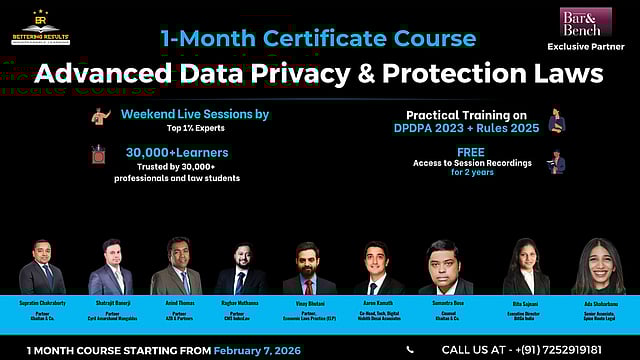 Bettering Results (BR) in collaboration with Bar & Bench, has launched its second batch following huge demand for its 1-month certificate course on 'Advanced Data Privacy & Protection Law.'