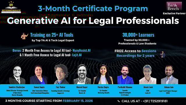 That’s why Bettering Results (BR) in collaboration with Bar & Bench as exclusive partner has built a 3 month online certificate programme on Gen AI for legal professionals, starting February 15, 2026 onwards.
