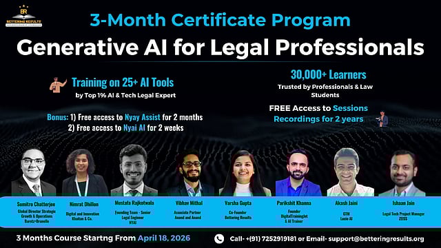 Applications are open for in-house counsel, practicing advocates, compliance professionals, law firm teams, startup founders, law students and anyone who wants to become an AI-powered legal professional.