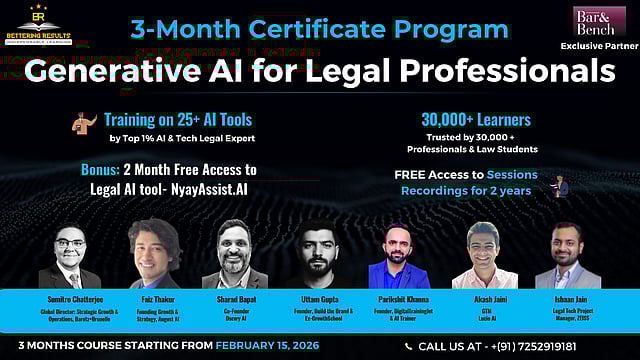 India's first generative Artificial Intelligence (Gen AI) certificate programme trusted by over 450 legal professionals is welcoming registrations from lawyers, and law students.