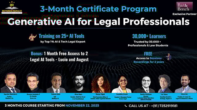 That’s why Bettering Results (BR) in collaboration with Bar and Bench as its Exclusive Partner has built a 3-months online certificate program on Generative AI for Legal Professionals, starting on November 22, 2025.