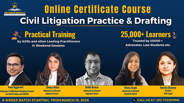 Bettering Results is launching its 5th batch of the 8-week Certificate Course on Civil Litigation Practice and Drafting, tailored for practicing advocates, law students, in-house counsels, and professionals aiming to build expertise in civil litigation strategies, drafting of pleadings, case management, and trial advocacy.