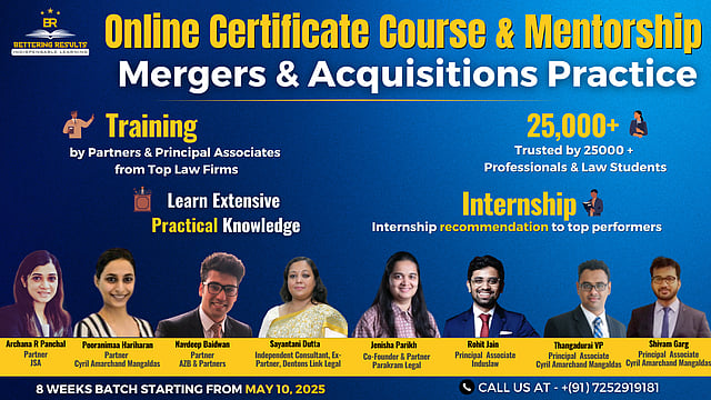 To help you break into this high-stakes corporate law field, Bettering Results (BR) is launching the 11th edition of its Mergers & Acquisitions Certification Course and Mentorship Program, beginning May 10, 2025.