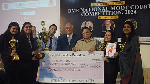 Institute of Law, Nirma University won the Delhi Metropolitan Education National Moot Court Competition organized by DME Law School affiliated to the Guru Gobind Singh Indraprastha University (GGSIPU) held on April 6th and 7th.