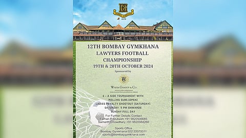 The Bombay Gymkhana is gearing up to host the 12th Annual Lawyers Football Championship on October 19 and 20, 2024.