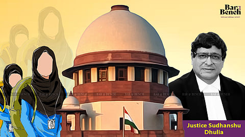 The right of a Muslim girl child to wear hijab does not stop at the school gate since she has a right to privacy and dignity inside the classroom as well, Justice Sudhanshu Dhulia of the Supreme Court said in his judgment on Thursday in the Karnataka hijab row case [Aishat Shifa vs State of Karnataka].