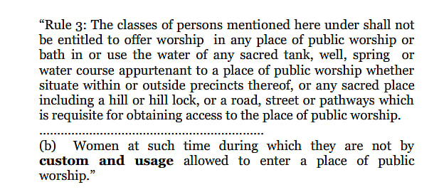 Rule 3(b) states that women shall not be entitled to offer worship in any place of public worship at such time during which they are not by custom and usage allowed to enter a place of public worship.